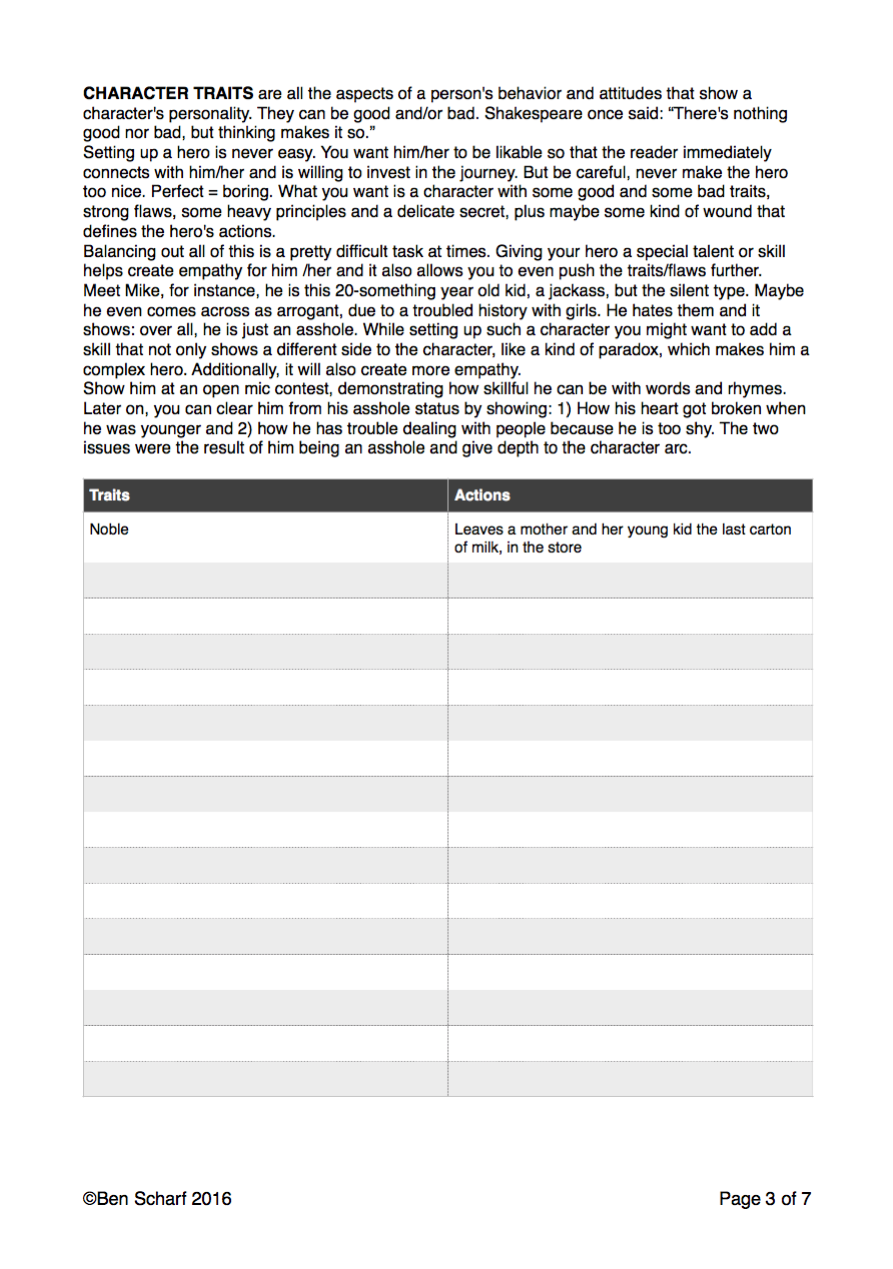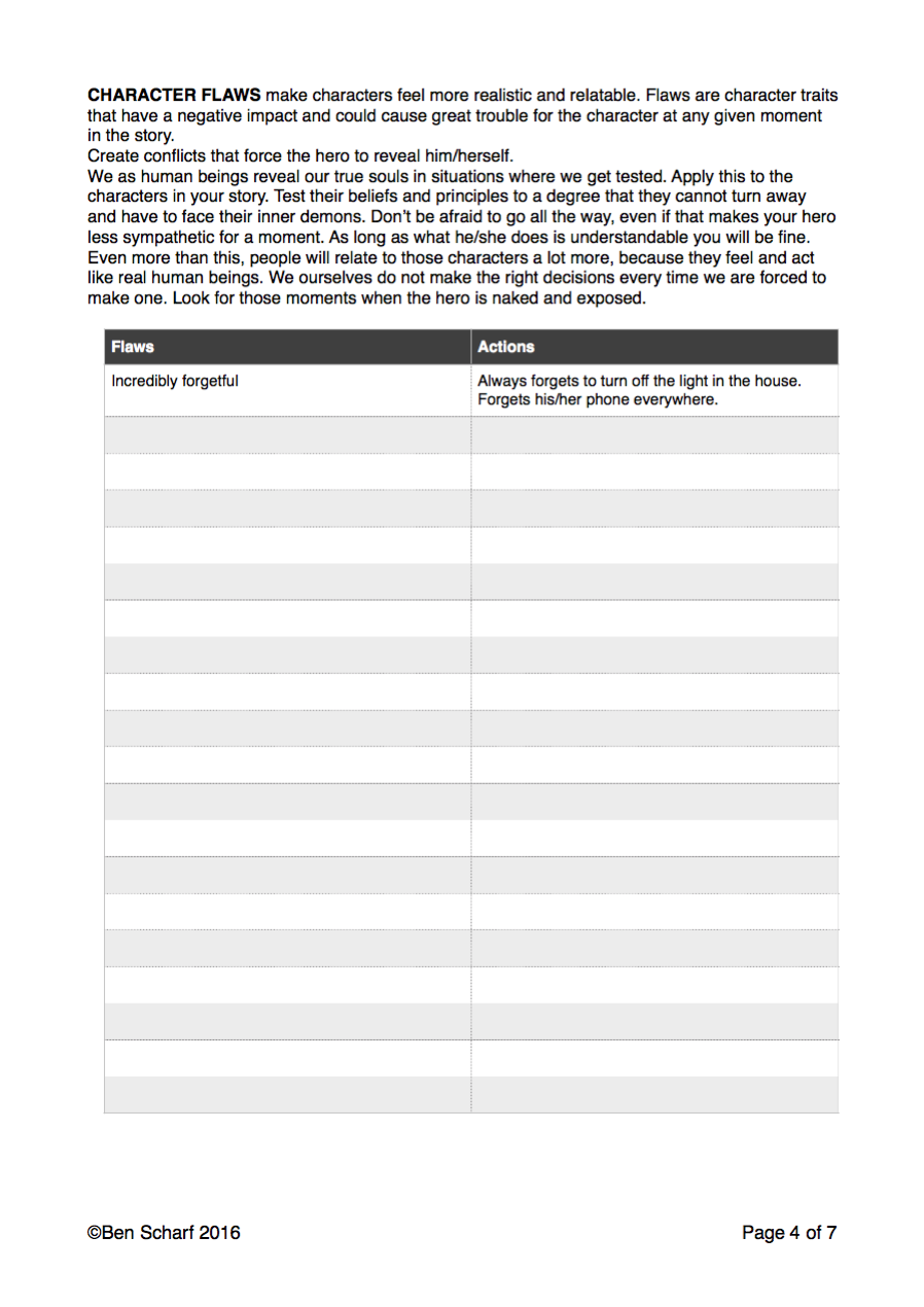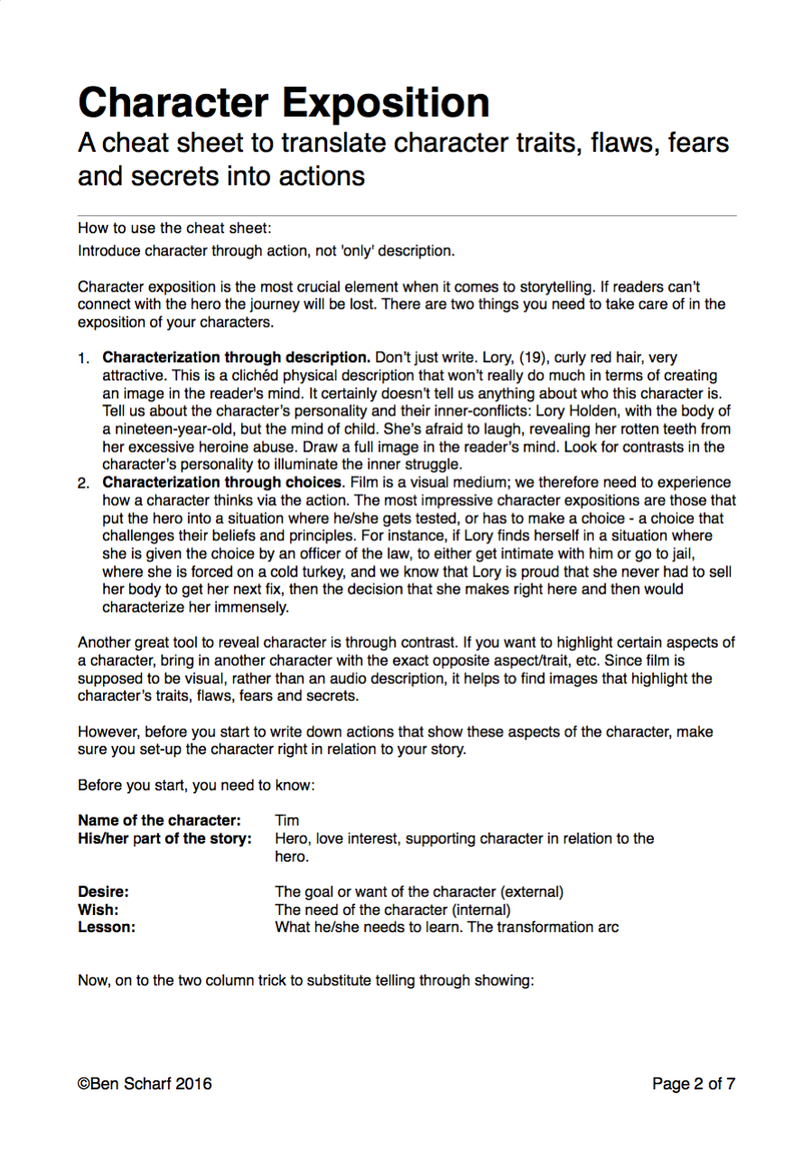 One of the major shortcomings of most scripts I get to read, as a story consultant and teacher, is a weak character set-up, so I created this worksheet to help you design the most powerful characters that jump off the page.